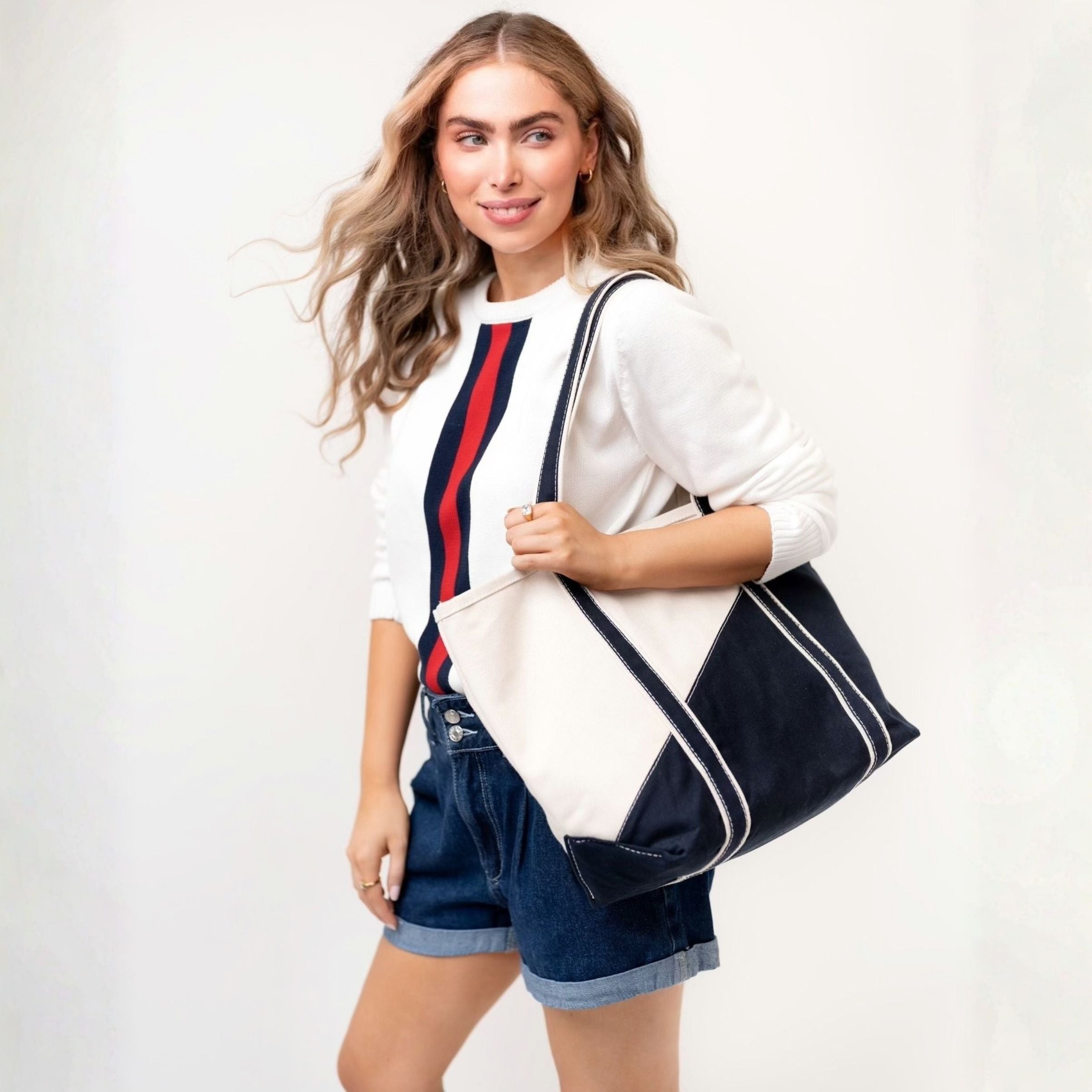 With the same durable construction as our Classic Totes, we've given these totes a contemporary twist. Designed to carry the heaviest loads and to last for years, these strong totes are naturally water resistant, making them perfect for groceries, days at the beach, or just getting to the office.