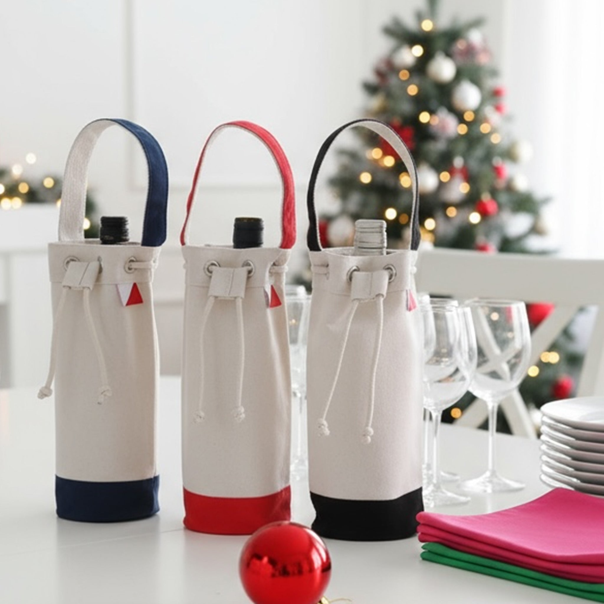 Make gift giving extra personal with these cute sturdy single bottle wine bags! Holds a single wine or champagne bottle perfectly. With brightly colored trim, it's easy to personalize this for anyone on your list.