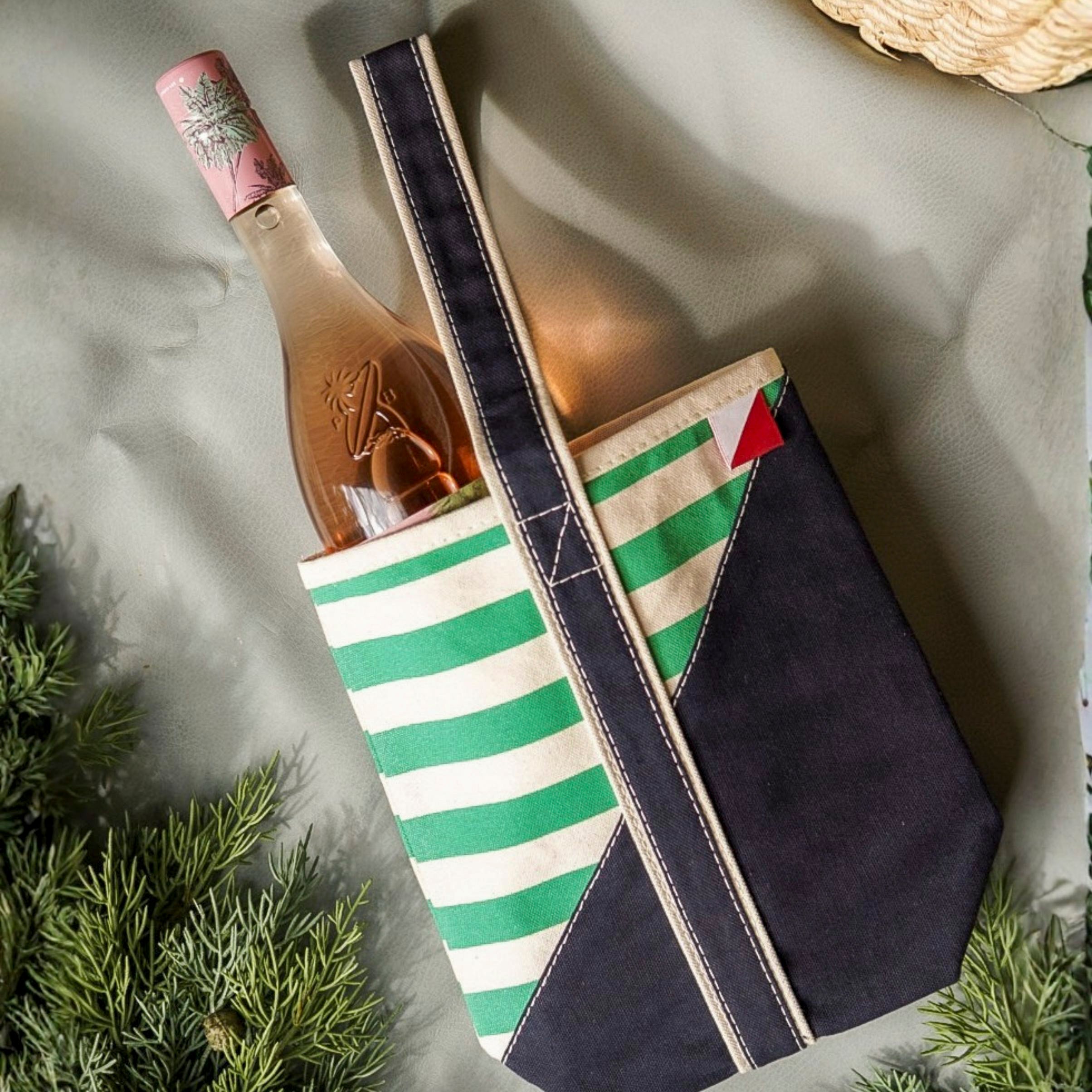 Our best-selling wine bag with a twist! This two-bottle wine bag is a perfect way to show your appreciation and celebrate in style. Our natural canvas is strong and keeps these bottles secure and supported. Works beautifully for host gifts, corporate events, and celebrations.